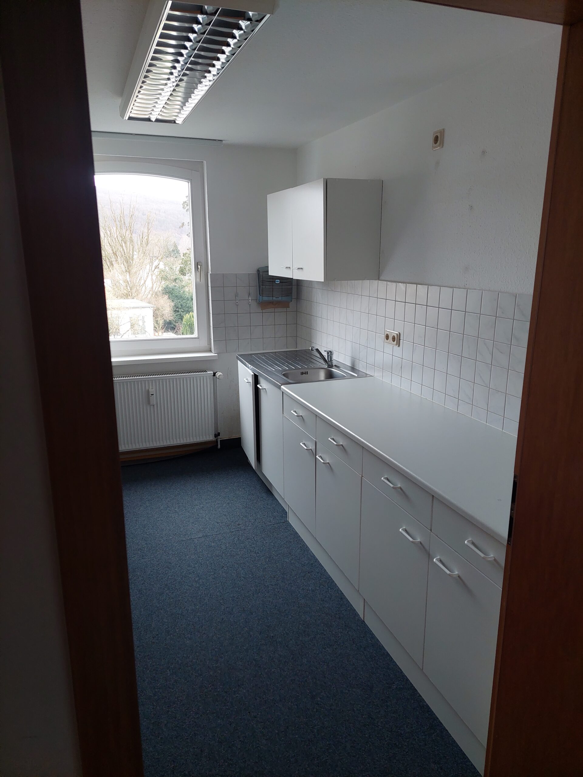 Die Büroetage ist hochwertig ausgestattet und verfügt über einen edlen Teppichboden. Zudem gibt es eine Einbauküche, die den Mitarbeitern die Möglichkeit bietet, Mahlzeiten zuzubereiten und Pausen angenehm zu gestalten. Die sanitären Anlagen umfassen zwei getrennte Toiletten, was den Komfort und die Praktikabilität erhöht.